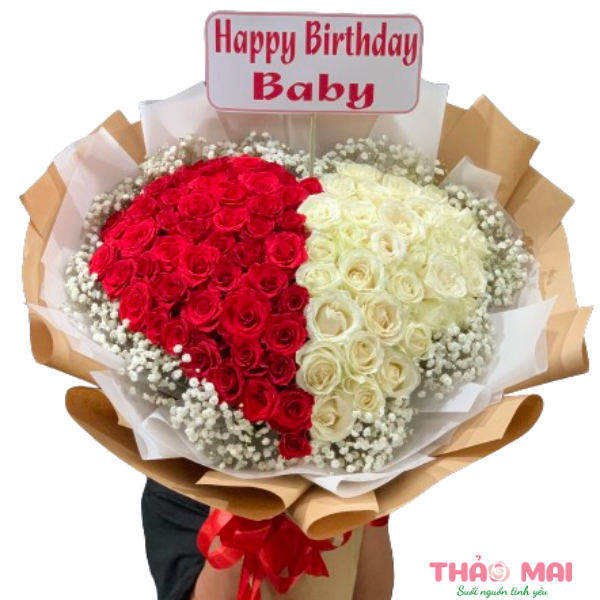 Bó hoa hồng đỏ tươi tắn, đẹp mắt. kết hợp hồng trắng trang nhã tinh khiết