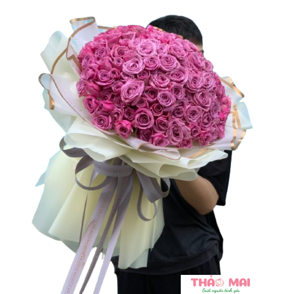 Bó hoa này được đóng gói từ những bông hoa hồng tím mang đến vẻ đẹp dịu dàng và ngọt ngào.