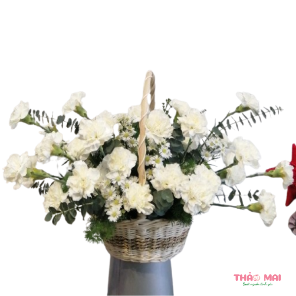 🌿🌸🌿 Giỏ Hoa viếng cẩm chướng trắng 🌿🌸🌿